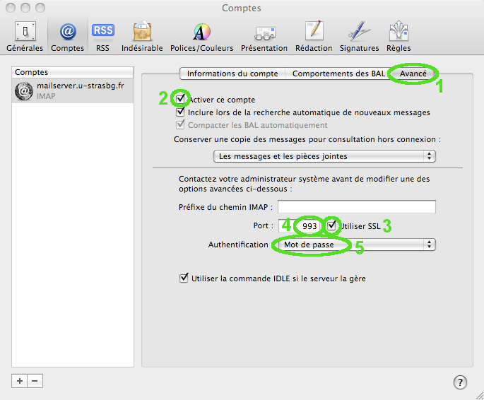 - Le "Nom du serveur" doit être mailserver.u-strasbg.fr